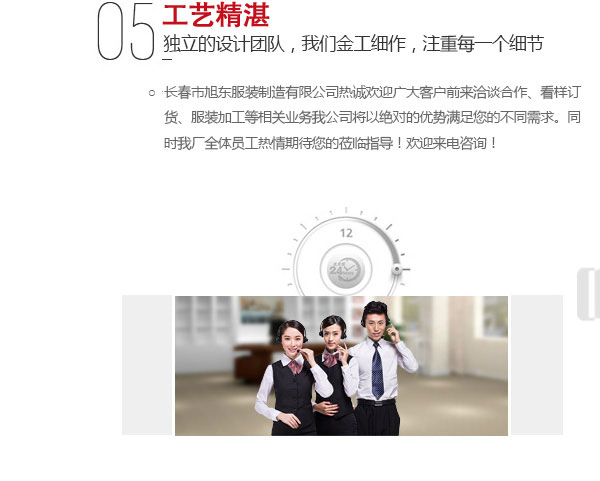 吉林省長春市旭東服裝廠,電話:13578777918,提供工作服,工裝定制,勞保服,保安服,職業裝定制,本公司是一家集生產,設計,制作,銷售為一體的多元化公司。長春市旭東服裝制造有限公司成立于2003...[查看更多]